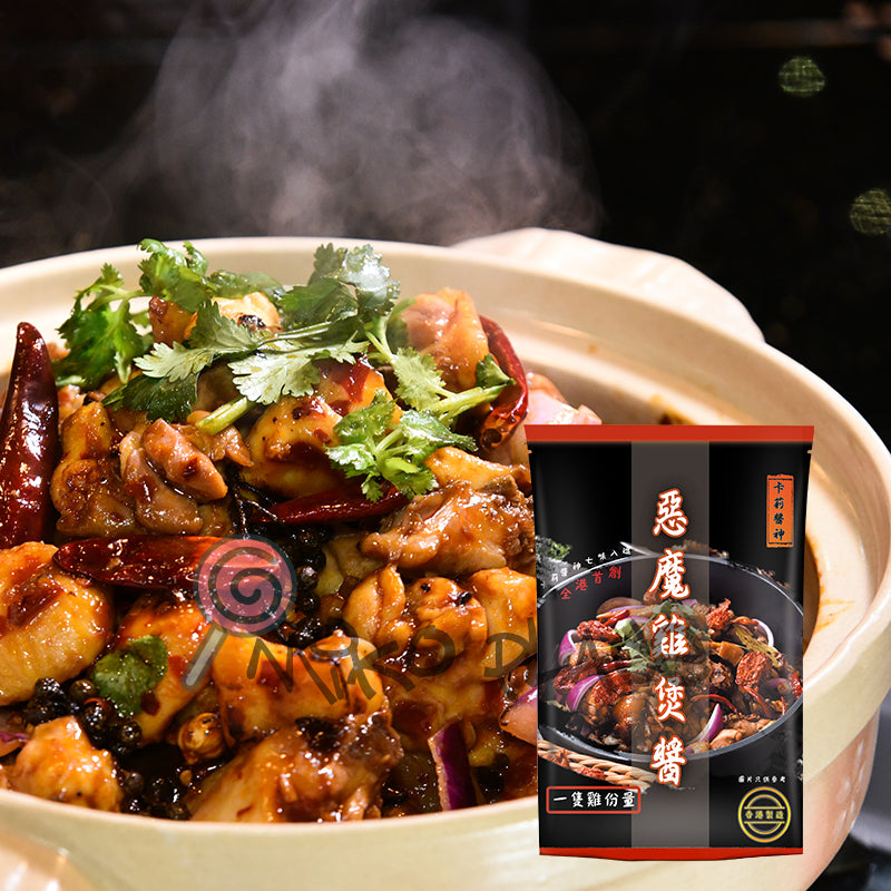 4, 加入半碗水,待醬汁煲滾時,蓋上煲蓋,調至細火,將雞燜熟