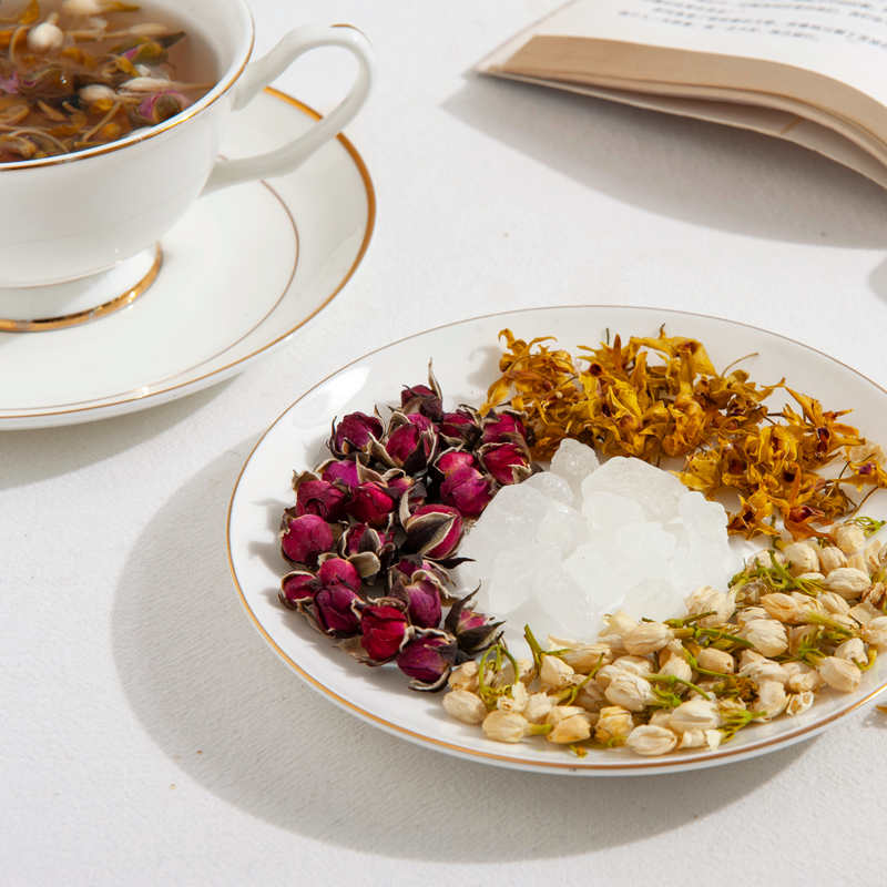 配料:茉莉花、玫瑰花、石斛花、冰糖
