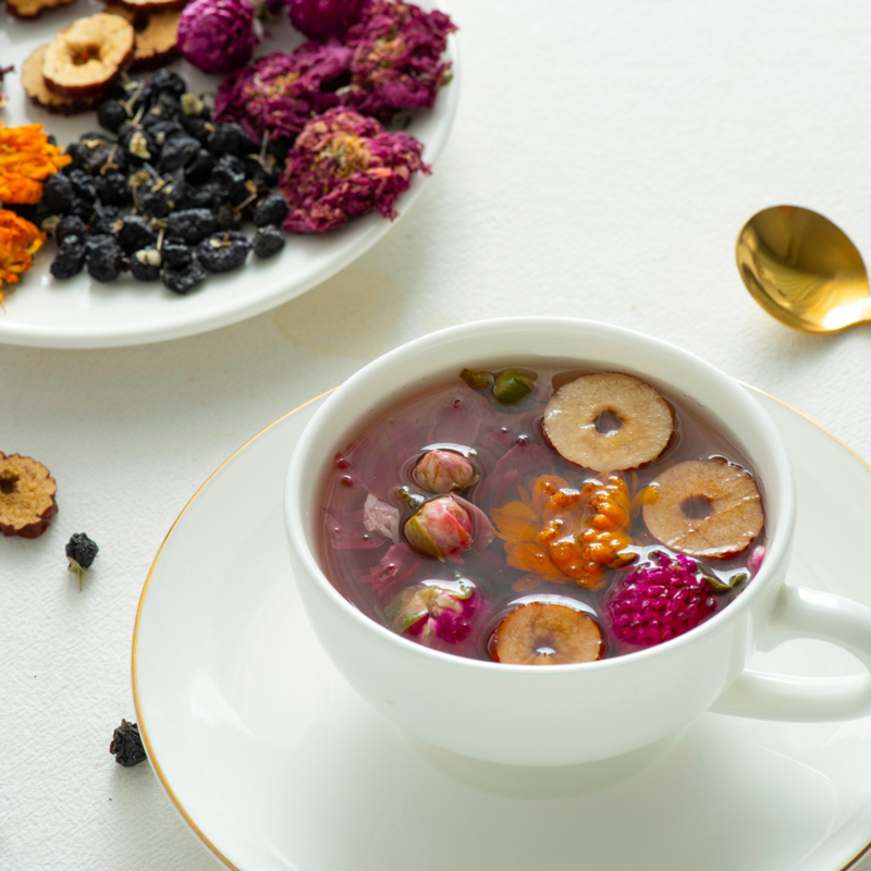 Ingredients: Longan, Red Dates , Globe Amaranth , Carnation , Rock Sugar , Calendula , Rose , Black Goji