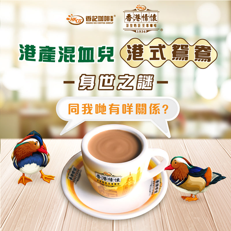 『港式鴛鴦』是香港茶餐廳獨有的沖調手法,將奶茶和咖啡以黃金比例混合,搭配出來的味道獨特、柔厚如緞,回味悠長,因此成為香港膾炙人口的經典滋味。