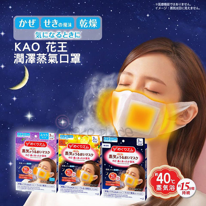 KAO MegRhythm Gentle Steam Face Mask Honey & Lemon | 花王 潤澤蒸氣口罩 蜂蜜檸檬香 3枚
