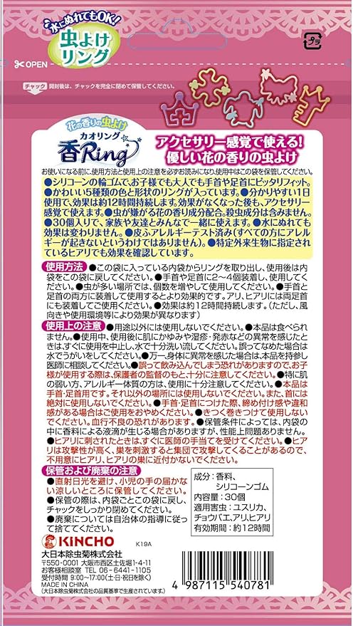 KINCHO Natural Oil Mosquito Repellent Bracelet 金鳥牌 日本卡通動物造型天然精油防蚊手環 30's (清新花香)