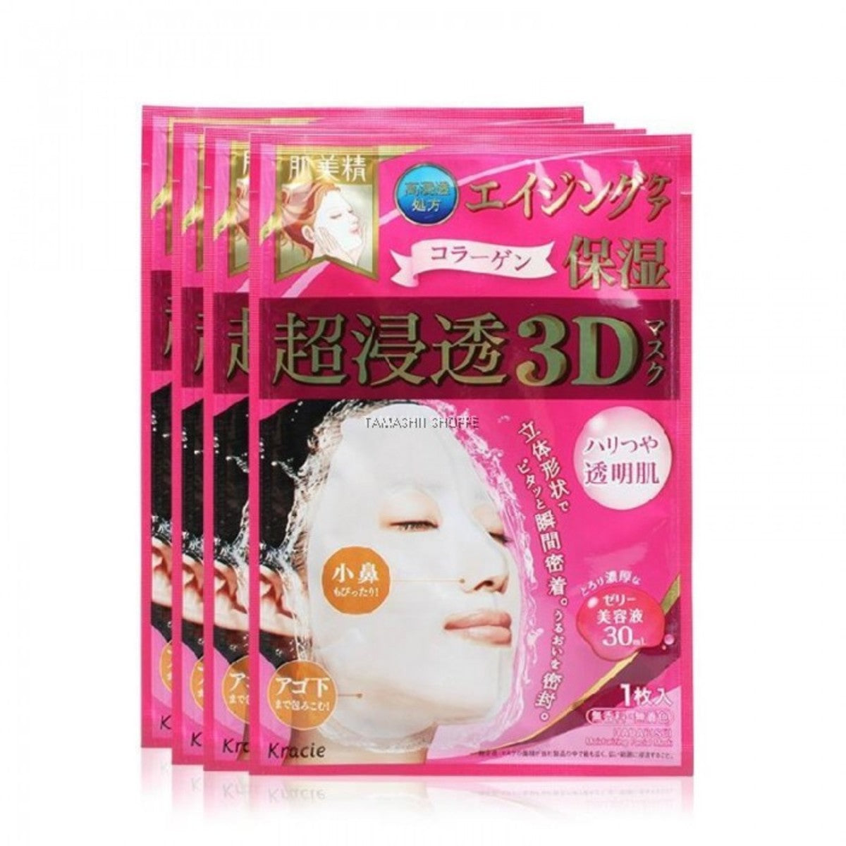 -每片面膜均含30ml美容精華液,讓肌膚恢復彈性,增加透明度與光澤。