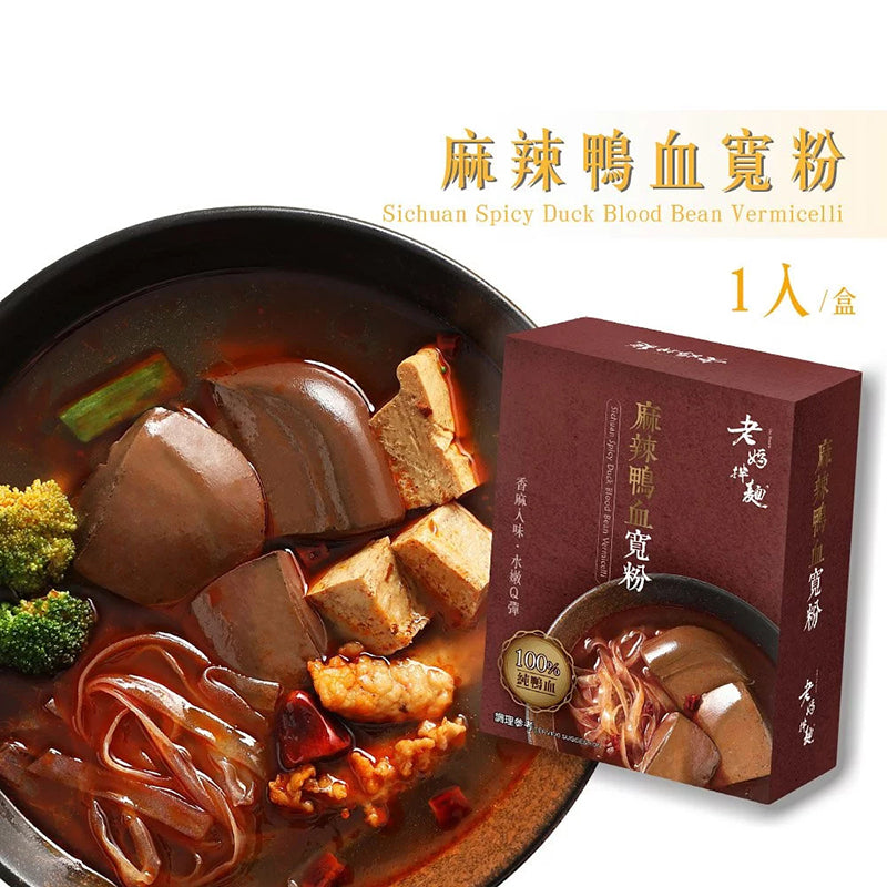 麻辣鴨血-鴨血、麻辣醬(豆瓣(鮮紅辣椒、蠶豆、食用鹽、菜籽油、味精、小茴香、香草、桂皮、八角、山奈、豆蔻、月桂葉、丁香、印度零陵香、己二烯酸鉀(防腐劑))、薑末、蒜末、辣椒油、花椒油、味醂(糯米、米麴、釀造用糖類)、花椒粉、黃酒、草果粉、蔬果粉、八角粉、孜然粉、L-麩酸鈉(味精) 、糖、維生素E(抗氧化劑))、水、米酒、蔥、薑