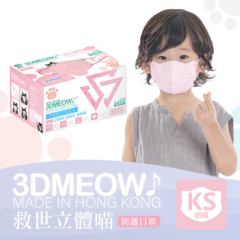 SAVEWO 3D Meow 救世 立體喵兒童口罩 30's【Size KS aged 2-6 粉色 Pink】