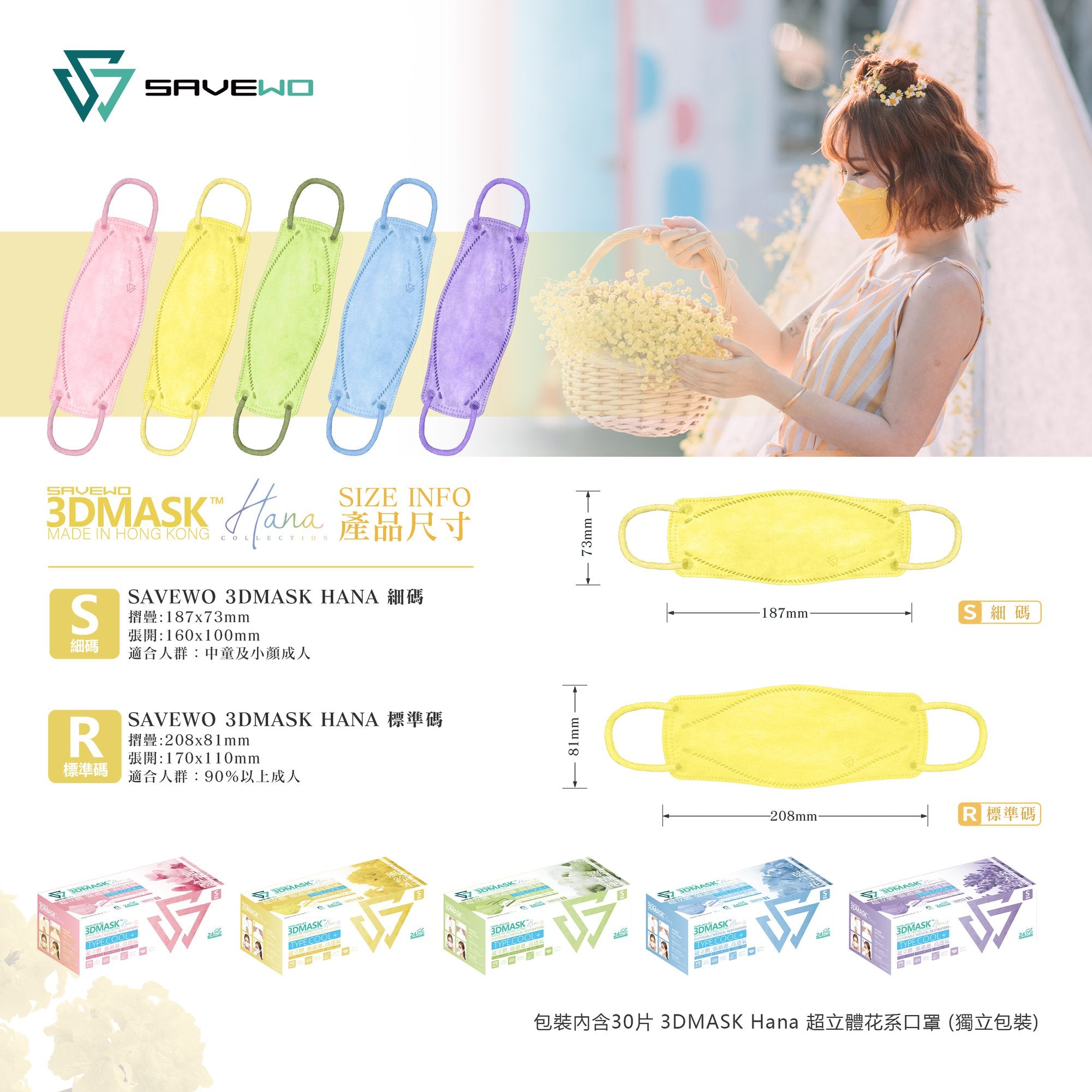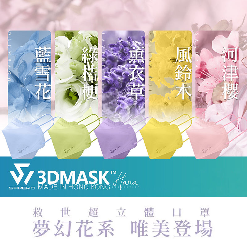 萬象更新,SAVEWO 3DMASK Hana Collection 救世超立體口罩花色系列亦升級登場!全新二代目採用改良的Regular 標準碼立體剪裁,令口罩更立體更舒適,而且配戴後更顯瘦~全新的舒適型耳帶柔軟順滑,加上透氣物料,配戴感受一試難忘。