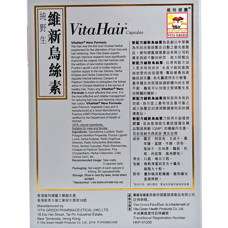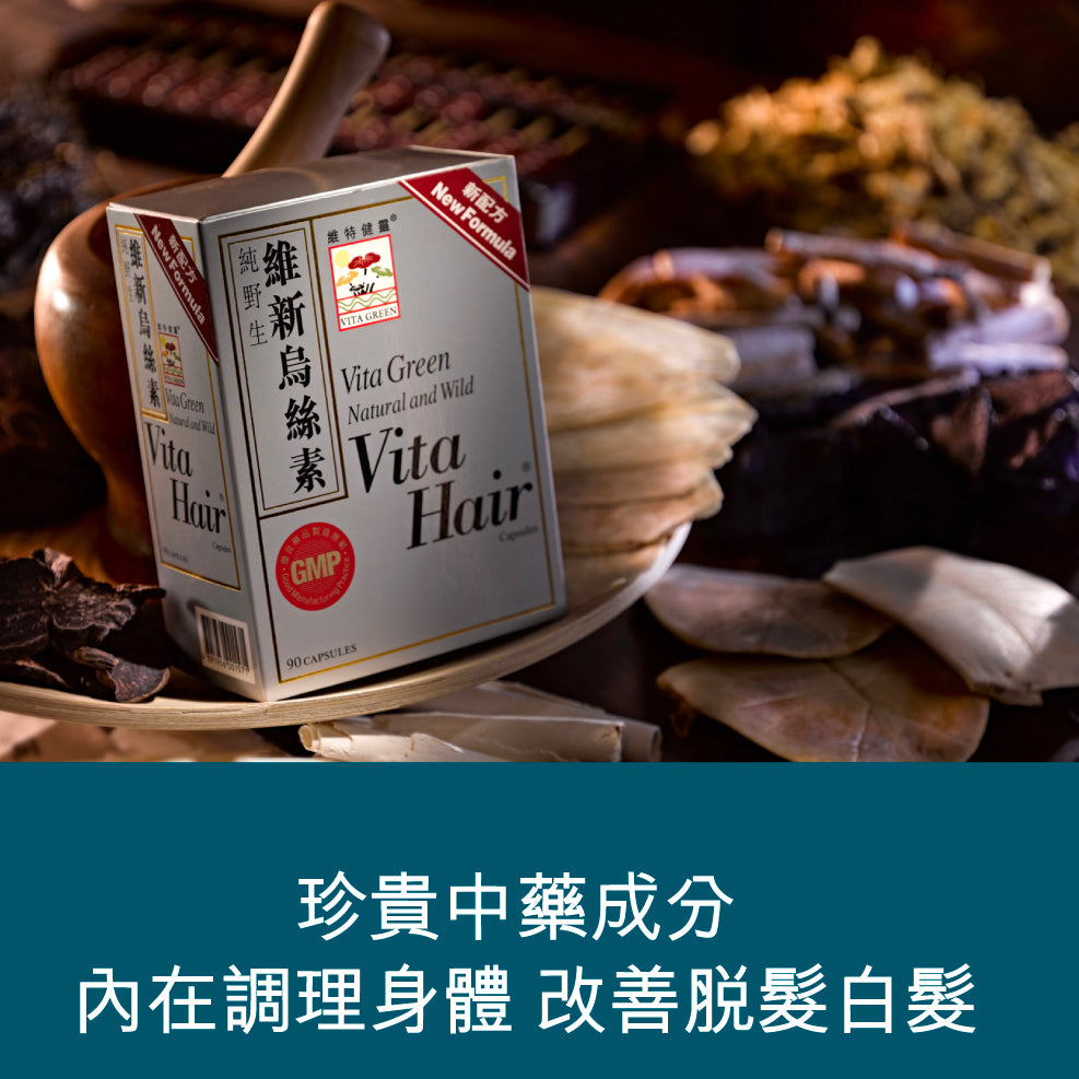 VITA GREEN Natural & Wild Vita Hair Capsules 維特健靈 維新烏絲素 90 Capsules 防脫髮,白髮 調理肝,腎,氣血