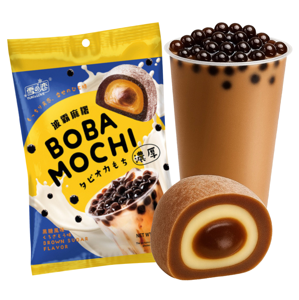 Yuki & Love的BOBA MOCHI波霸麻糬,內含紅糖餡料。這款獨特的亞洲小吃以米或糯米粉製成,富含柔軟的BOBA果凍,並包裹著紅糖調味的甜餡。麻糬,是最受歡迎的日本甜點之一,有多種口味可供選擇,例如紅豆、芝麻、草莓、焦糖和芋頭。