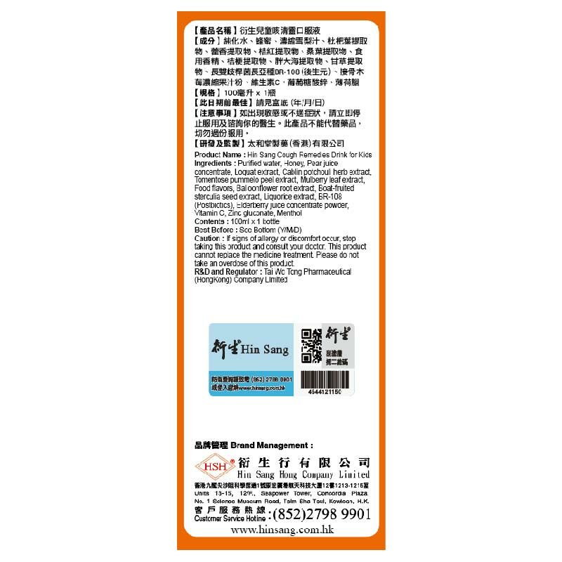 Hin Sang Cough Remedies Drink for Kids | 衍生兒童咳清靈口服液 (100ml)