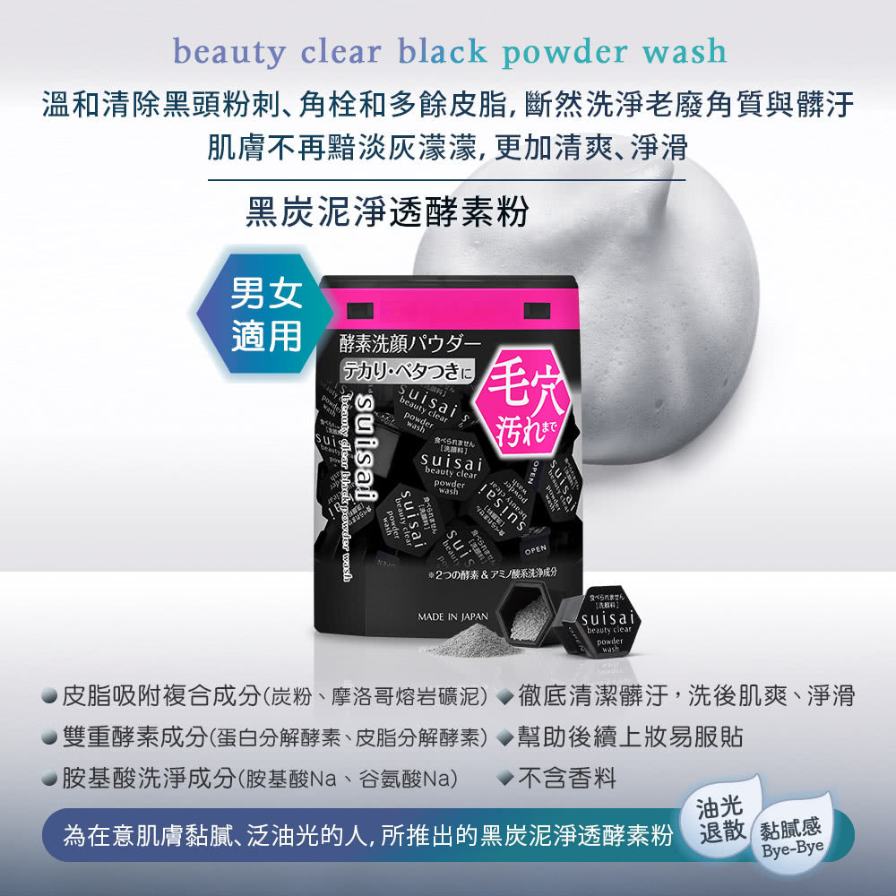 Suisai皇牌酵素洗顏粉推出了黑炭特別版!為肌膚吸附污垢、溶解油脂及去除老廢角質,改善粗糙及瑕疵問題,泡沫細膩,洗後皮膚柔軟細緻,尤其適用男生使用!