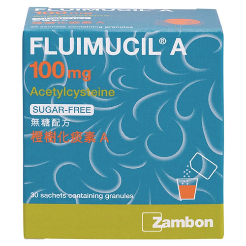 FLUIMUCIL A100mg (Sugar-free) Granules | 橙樹 化痰素 A100mg 30包 無糖【化痰 | 咳嗽 | 舒緩咳嗽】兒童配方
