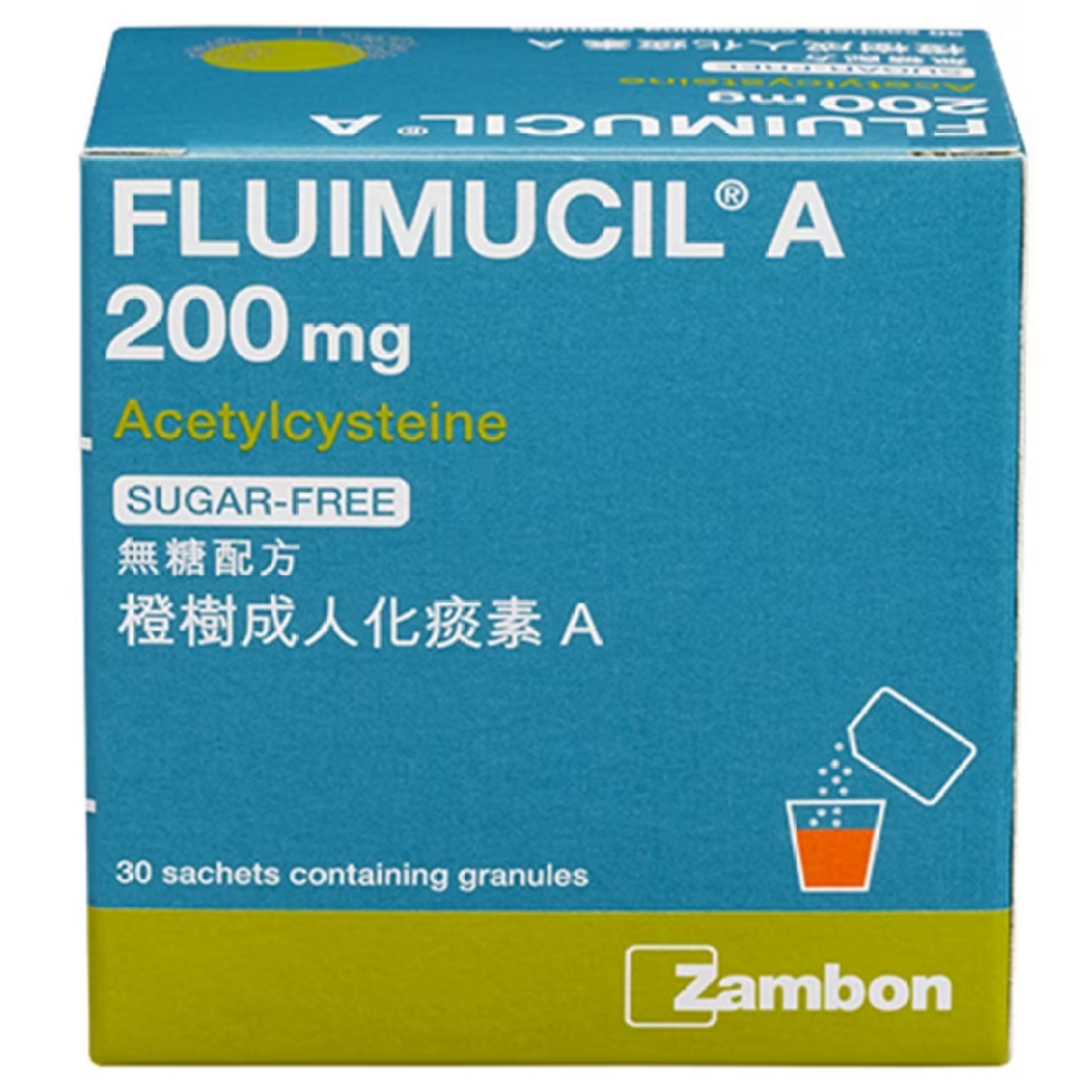 FLUIMUCIL A200mg (Sugar-free) Granules | 橙樹 化痰素 A200mg 30包 無糖【化痰 | 咳嗽 | 舒緩咳嗽】成人配方