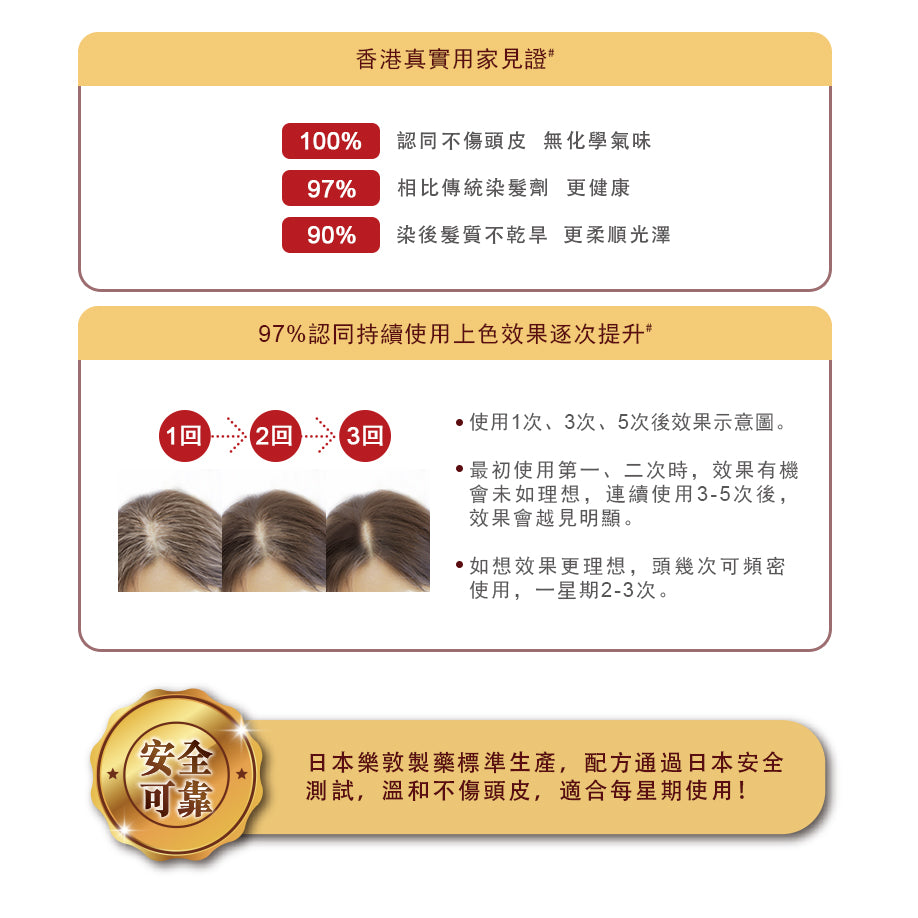 .不含阿摩尼亞、Paraben、礦物油、矽、SLS化學起泡劑、酒精及氧化染料如苯二胺。(PPD)、 氨基苯酚,間氨基苯酚,甲苯二胺等致敏成分。