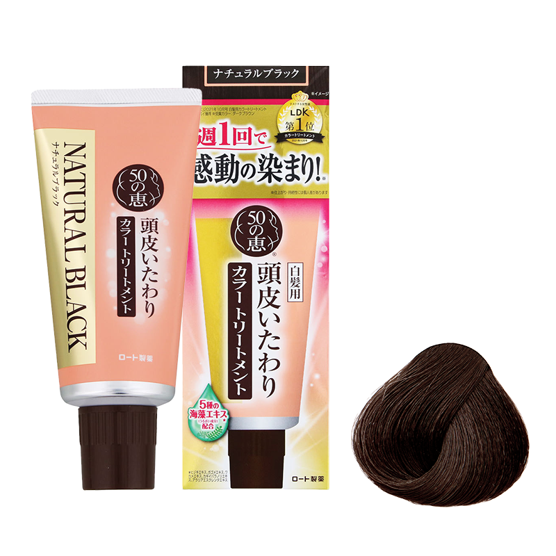 • 傳統染髮劑較刺激及傷害頭皮,經常使用容易令頭髮變得乾旱無光澤,頭皮敏感,甚至掉髮增多。日本50惠天然海藻染髮護髮膏,5大天然海藻精華,不含10大致敏成份,不傷頭皮及髮芯,適合每星期使用一次,保持均勻亮麗髮色。