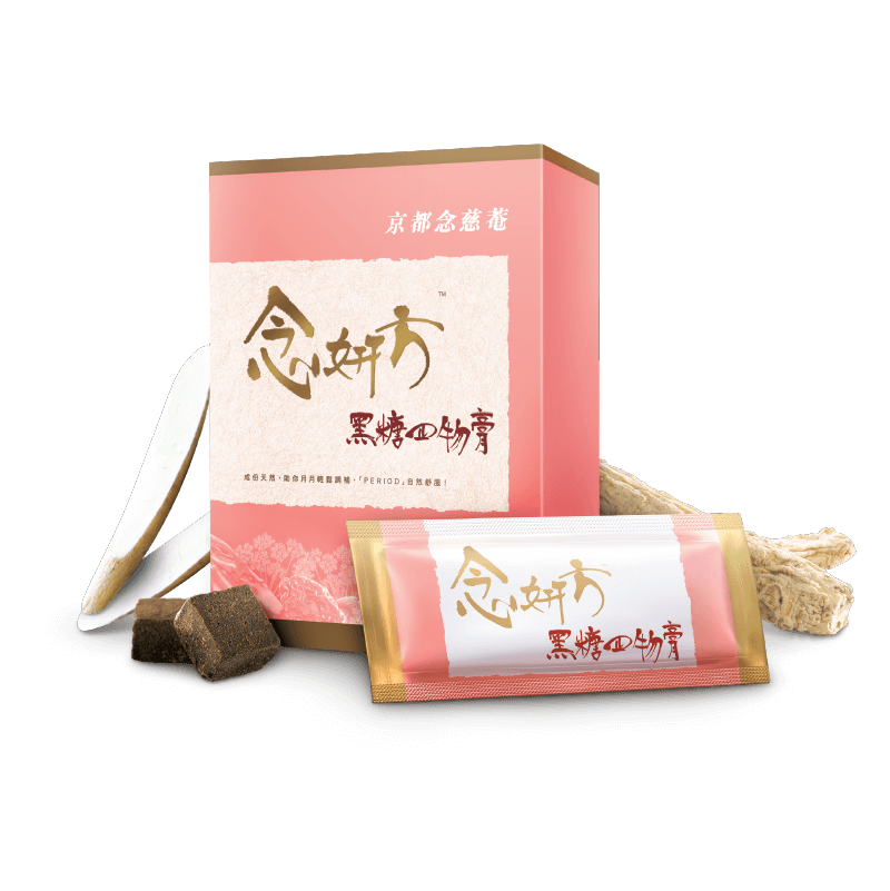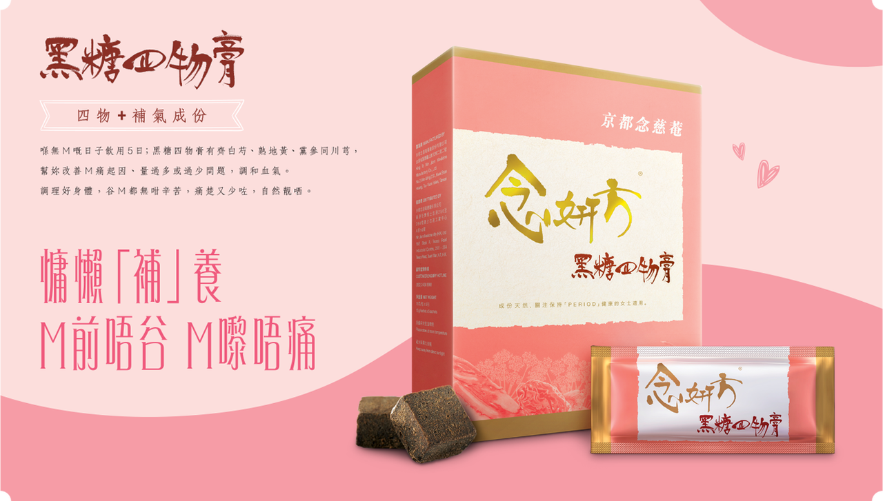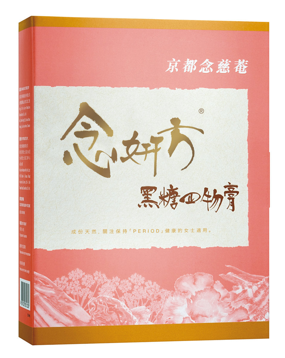 京都念慈菴 - 念妍方黑糖四物膏 由十多種中草藥成份配以黑糖提煉而成,除「四物」外,更特別加入黨參、桂圓、茯苓等補氣健脾,針對女性普遍因少運動、晚睡、吹冷氣、飲食不良等,導致氣虛、消化力弱而設。