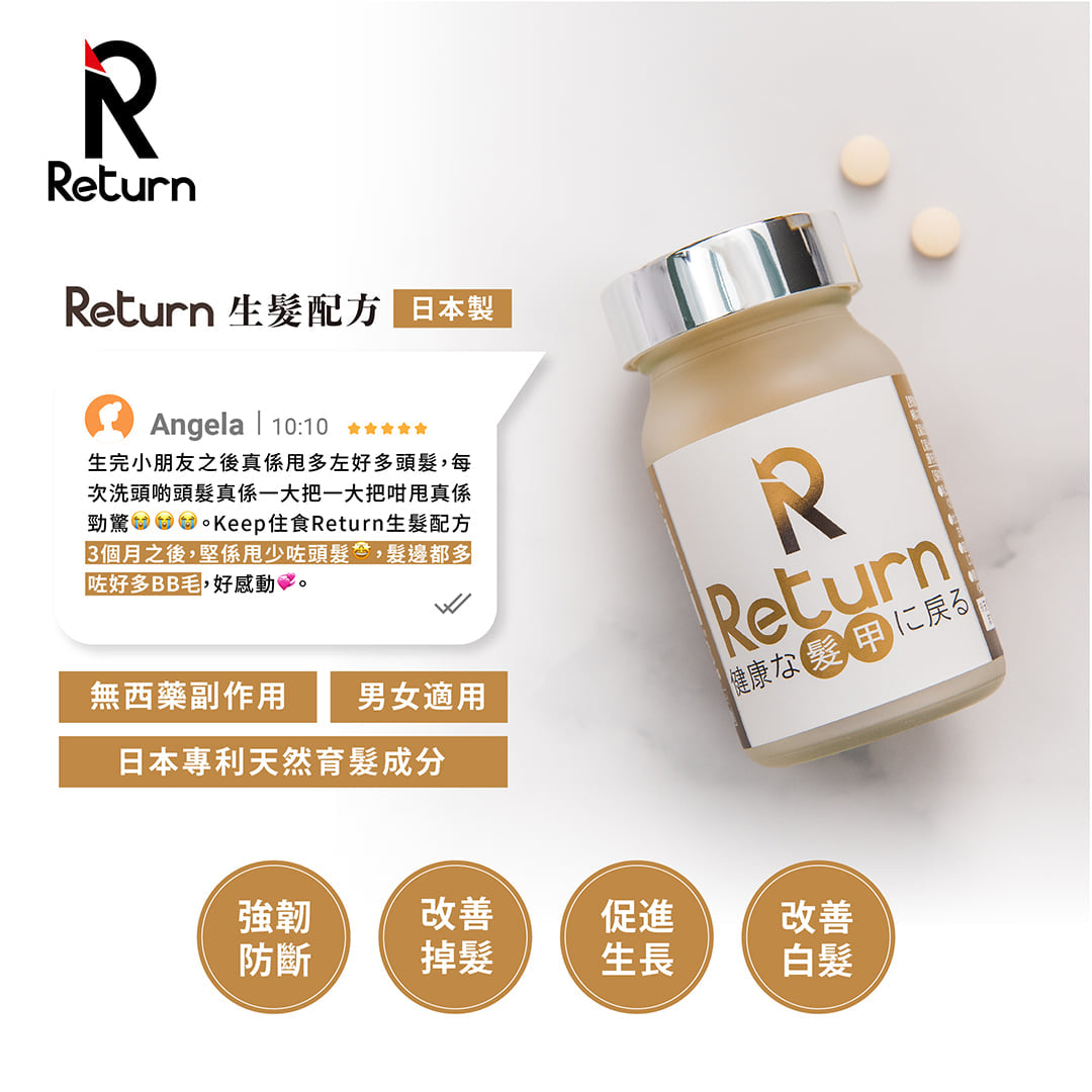 恢復毛乳頭黃金狀態;配合天然NAG,強化支持毛髮及毛囊的結構組織 (CTS),頭髮增厚及變得光澤、柔順及強韌。