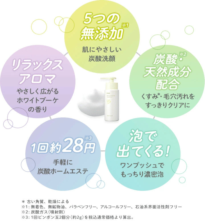 除了能清除造成暗沉的老舊角質和髒污之外,炭酸泡沫還能促進循環機能,為肌膚帶來透明感和健康的紅潤感。