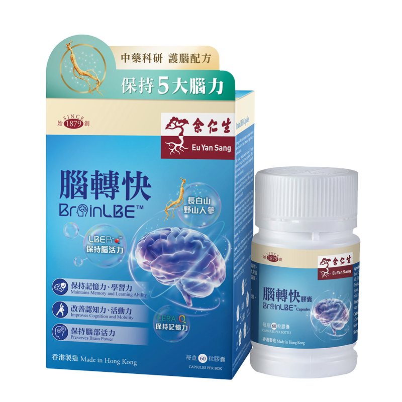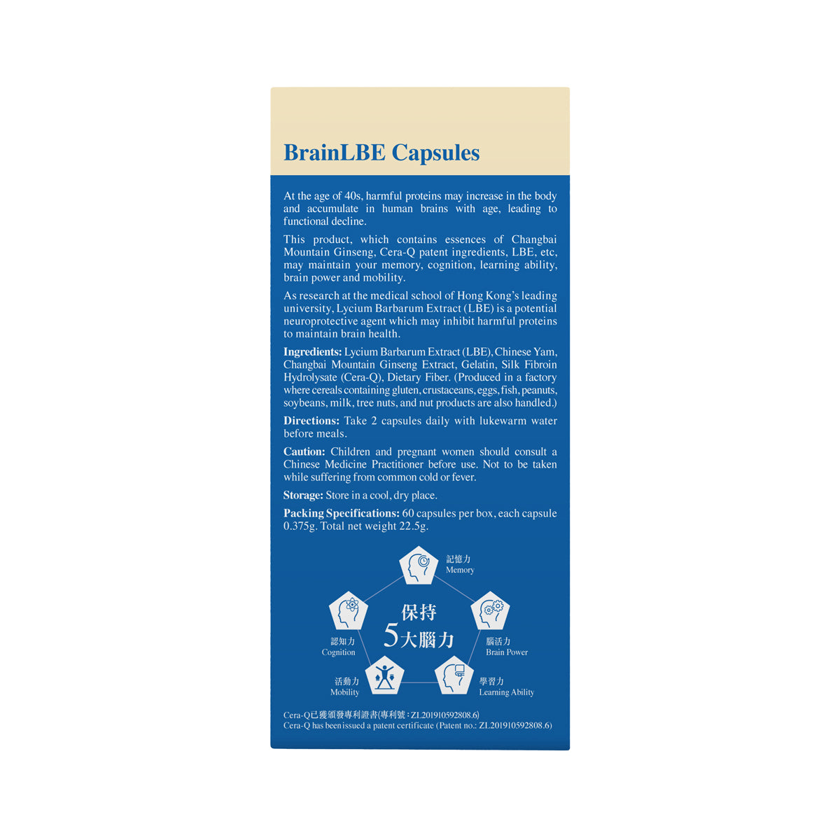 本品採用長白山野山人參、Cera-Q專利成分、LBE等,有助保持記憶力、認知力、學習力、腦活力、活動力。