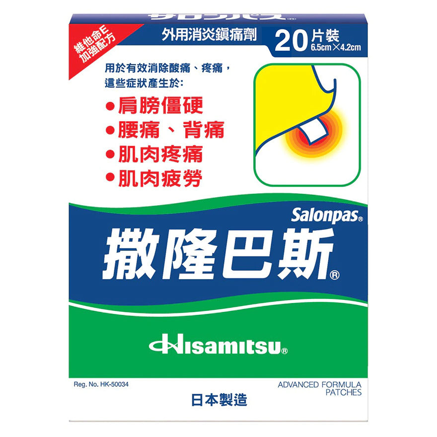 HISAMITSU Salonpas Advanced Formula Patches | 撒隆適 撒隆巴斯鎮痛膏布 6.5x4.2cm 20 pcs