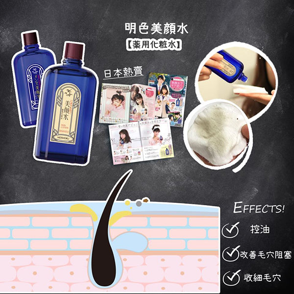 特有軟化角質的水楊酸和防止油脂阻塞的Pionin,有效控油、抺走死皮及過厚角質、緊致粗大毛孔,減少黑頭、粉刺,改善粗糙肌膚,也可作為潔膚水使用,用後肌膚得到軟化,回復光亮。誕生於1885年,是身為藥劑師的創業者為其粗糙肌的妻子研製的化妝水,百多年來改善日本女性皮膚粗糙問題,日本CUTIE雜誌好評推薦。水楊酸用以消炎及殺菌,同時加快角質的新陳代謝。Pionin 對引致暗瘡的丙酸桿菌(Propionibacteria)具有強效抗菌作用, 為油性及暗瘡肌膚控制多餘油脂,改善皮膚閉塞,有效防止及治療暗瘡及粉刺,同時能淡化暗瘡疤痕。