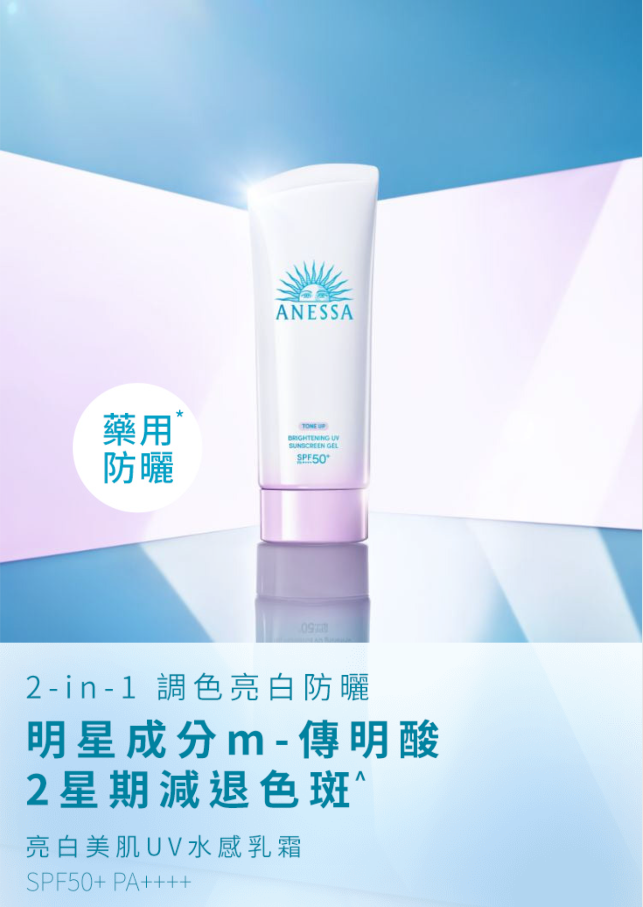 輕透水感乳霜,以日本厚生勞動省認證之活性亮白成分「m-傳明酸」,從肌底根源抑制黑色素、預防色斑雀斑等。 淡紫色調可作妝前底霜使用,改善泛黃暗啞、提亮及剔透白皙。