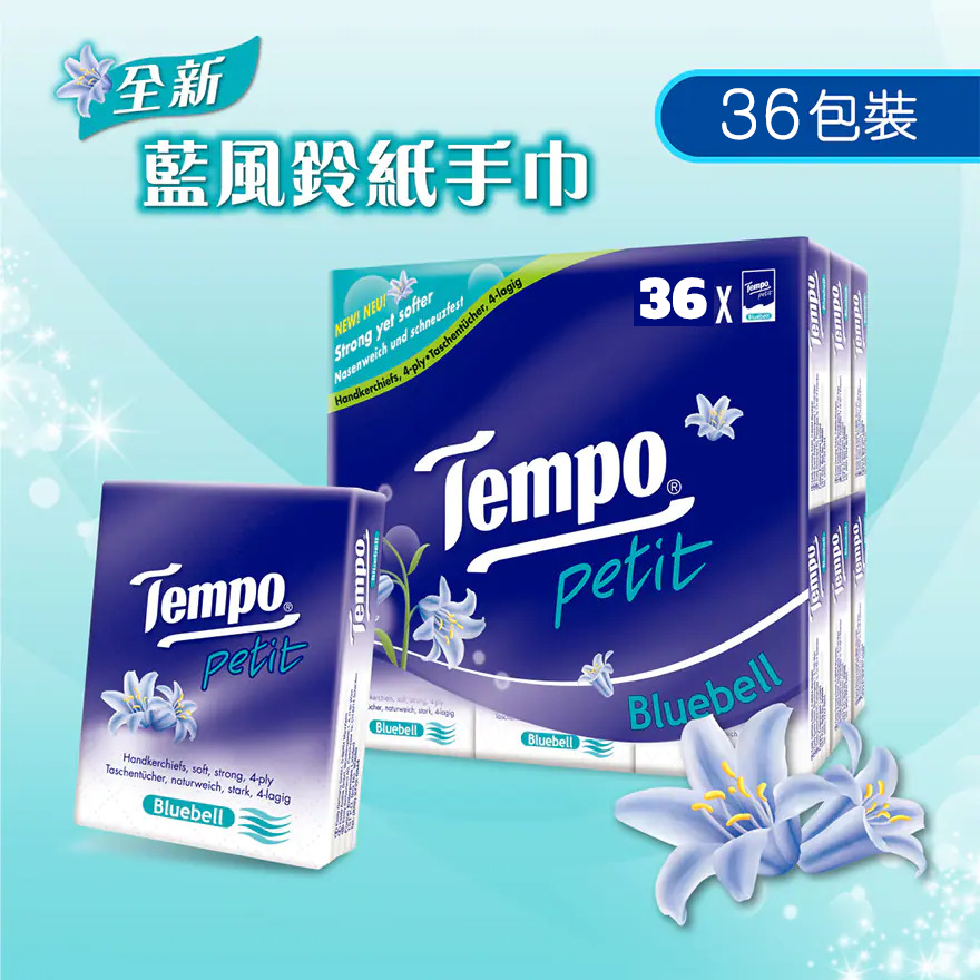 【代購產品現貨】TEMPO Petit Pocket Bluebell | Tempo 紙巾 藍風鈴味 36s