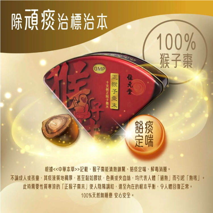 WAI YUEN TONG - Monkey Bezoar Powder | 位元堂 - 正猴子棗末 強效除痰 10 Bottles