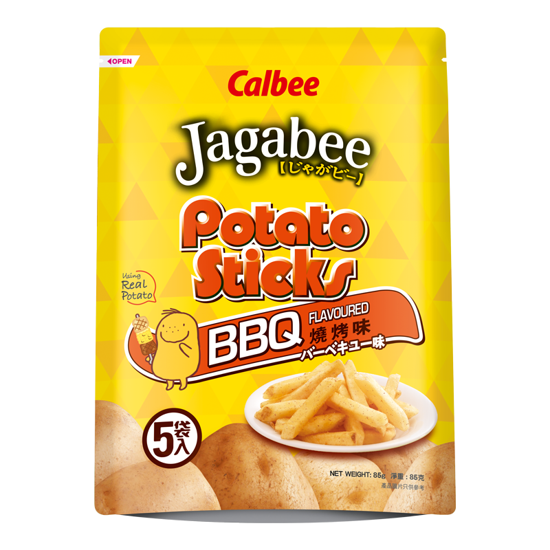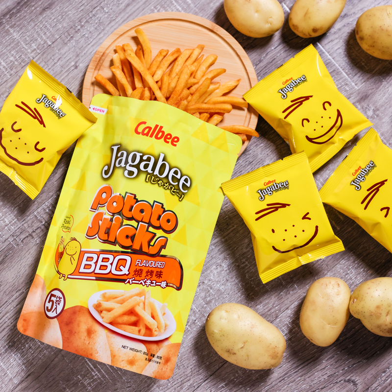 今次聯乘更用上原隻馬鈴薯,製成口感鬆脆而不油膩的薯條,配上惹味獨特的經典燒烤口味,薯香中加上烤肉與野菜風味,簡直令人著迷,一口接一口!包裝上的Jagabee Potta角色更添鬼馬,每包淨重85克,內附5小包,適合當零食或分享。