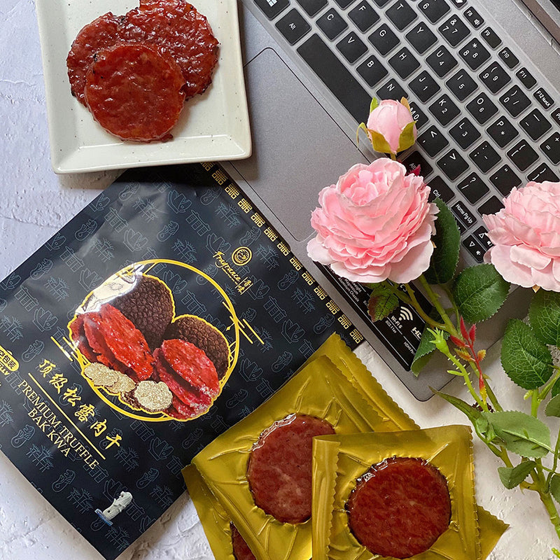 Premium Truffle Pork Jerky are made with the finest pork and Summer Black Truffles, with no preservatives added. The truffles used are harvested from renowned farms in the Marche and Umbria region in Italy and are air flown to us to curate the perfect Truffle Bak Kwa. Our Premium Truffle Bak Kwa are truly a delight and not to be missed!