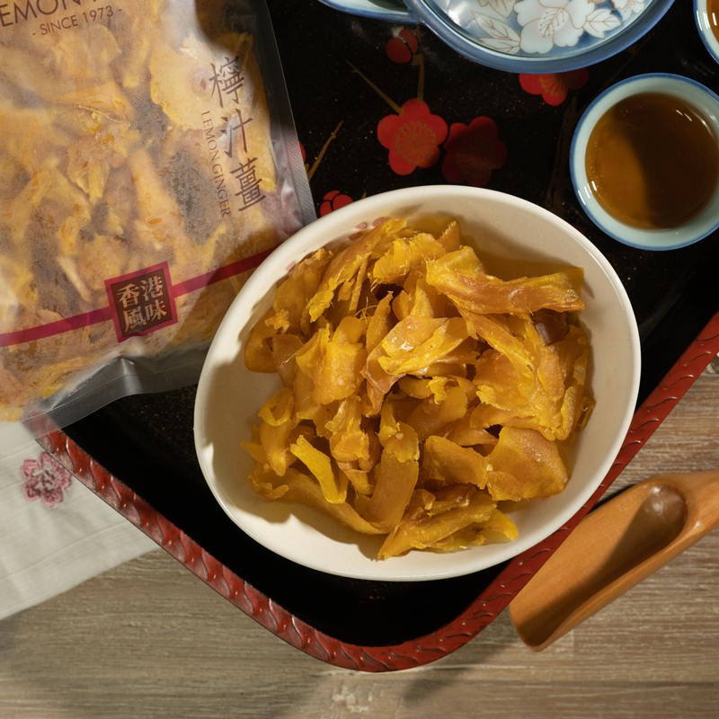 選用優質肉薑製作而成,味道甜美,略帶薑的辛辣味。按中醫記載,薑性味辛溫,有祛寒、止咳、止嘔作用,有嘔家聖藥之稱。現代研究同樣指出薑具有舒緩噁心、腸胃痛、發炎等功效。