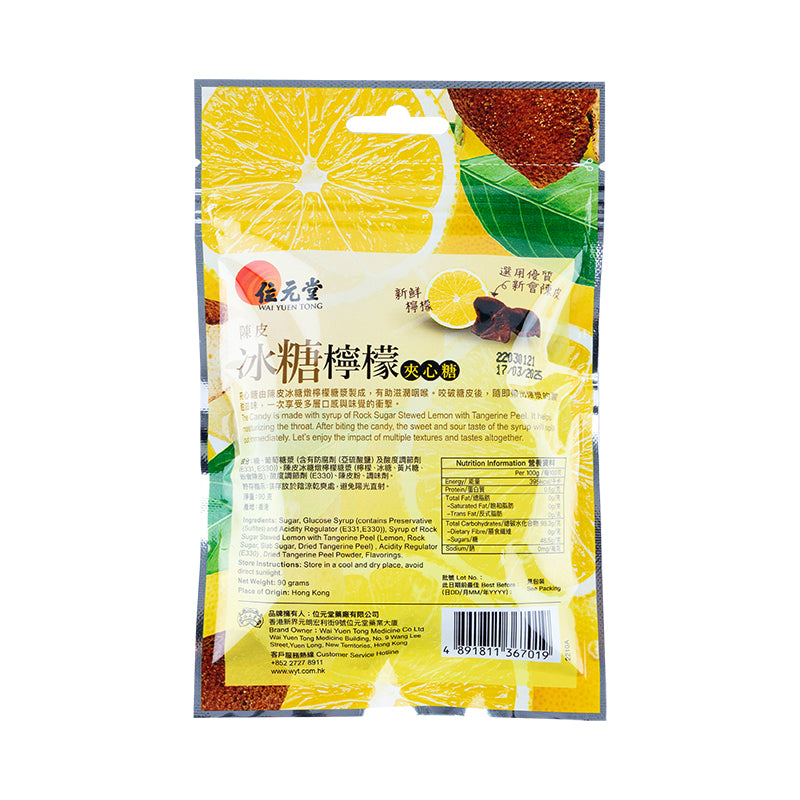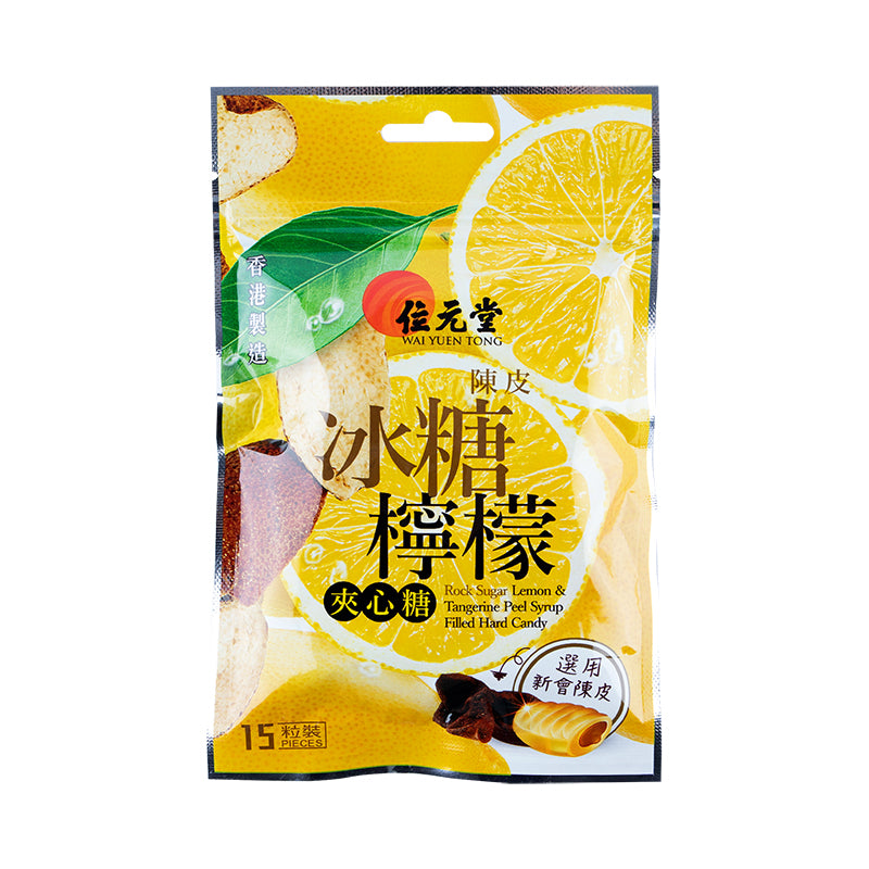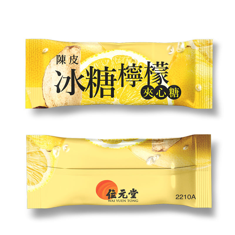 夾心糖由陳皮冰糖燉檸檬糖漿製成,有助滋潤咽喉。咬破糖皮後,隨即帶出爆漿的酸甜滋味,一次享受多層口感與味覺的衝擊。