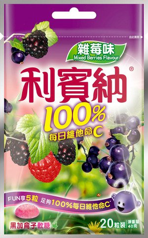 由馬來西亞著名藥廠葛蘭素史克出產的QQ軟糖,真正黑加侖汁,糖果味道濃鬱,富含維他命C,五粒即可滿足每天所需,無論大人小孩都是一種很有益的糖果。