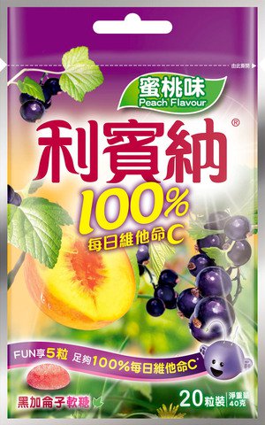 由馬來西亞著名藥廠葛蘭素史克出產的QQ軟糖,真正黑加侖汁,糖果味道濃鬱,富含維他命C,五粒即可滿足每天所需,無論大人小孩都是一種很有益的糖果。
