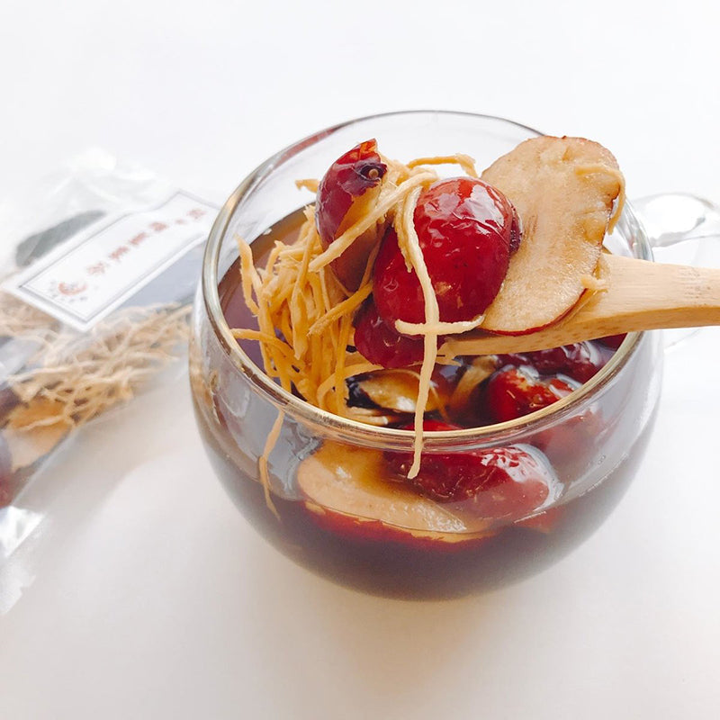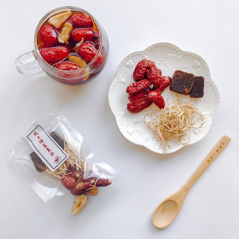 成份: 黑糖, 乾薑絲, 紅棗 方法:取一袋置入杯中,沖入300ml沸水,10分鐘後享用