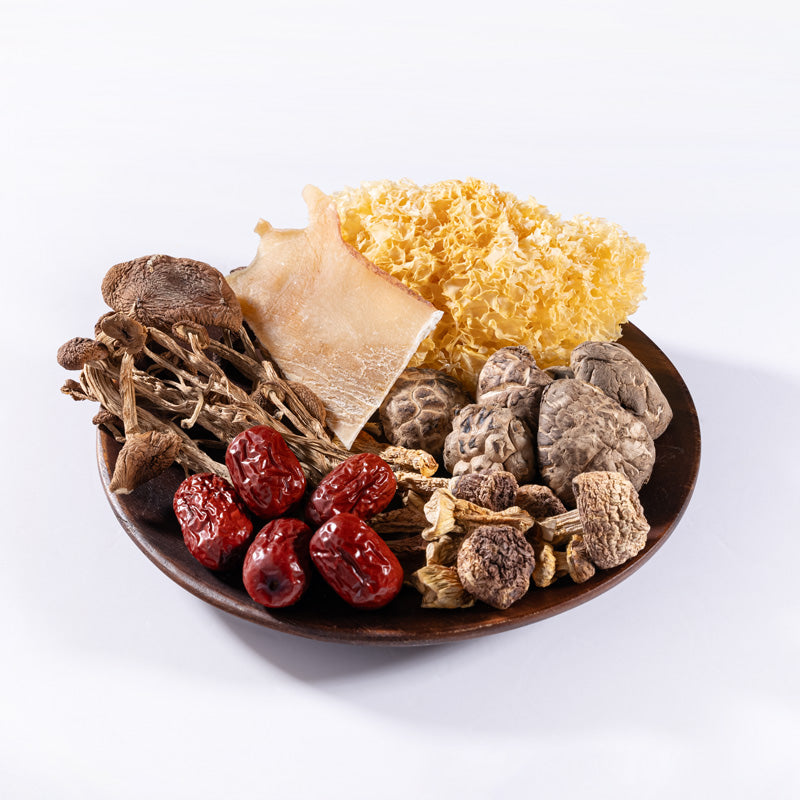 姬松茸,茶樹菇,花菇,螺片,紅棗,雪耳,防腐劑(二氧化硫)