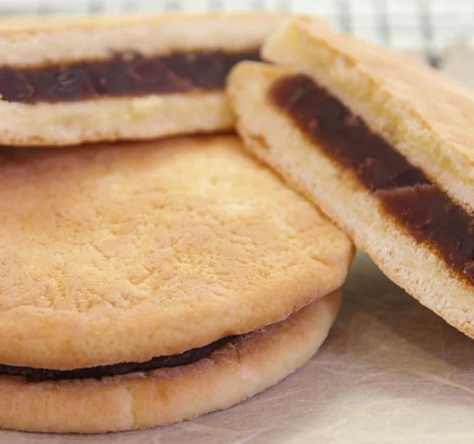 使用日本國產小麥粉烘烤出香氣濃郁的餅皮,外層微焦香、內裡濕潤,中間夾入精選紅豆製成的粒あん(帶粒紅豆餡)。