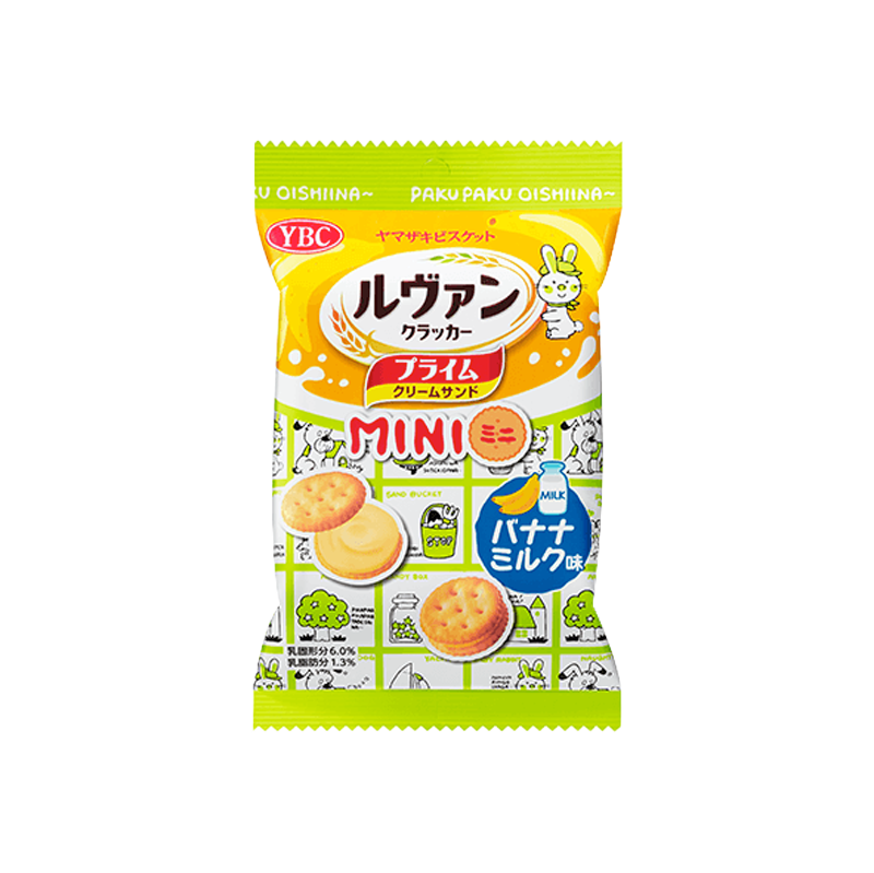 Levain Prime 的酥脆口感夾著香甜濃鬱的香蕉牛奶奶油。香蕉的香甜與牛奶的濃鬱口感完美融合。除了標準產品外,包裝設計還與 Shimojima 於 1970 年推出的包裝設計「Stoppale」合作。共有兩種設計可供選擇,黃色主題令人聯想到香蕉牛奶。