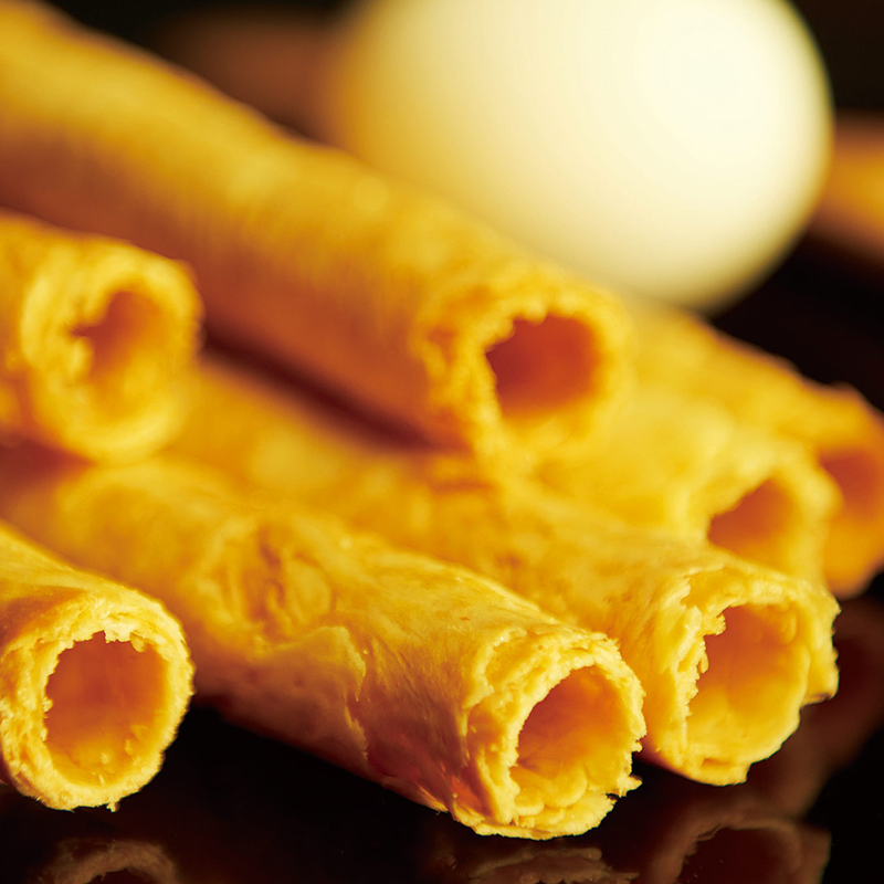 原味雞蛋卷:結合了頂級雞蛋,天然的牛油,極細緻的麵粉,超幼的沙糖,它們的相遇使蛋卷回復純天然食味,讓您嚐到濃濃的家鄉情懷/風味。