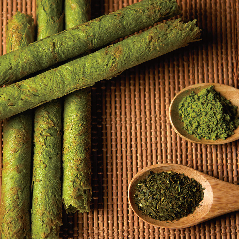 大廚選取日本宇字抹茶, 將抹茶的健康元素完美結合在蛋卷中, 讓平凡的蛋卷將《尊》;的另一面優質及健康信息送給客人/愛健康的您。